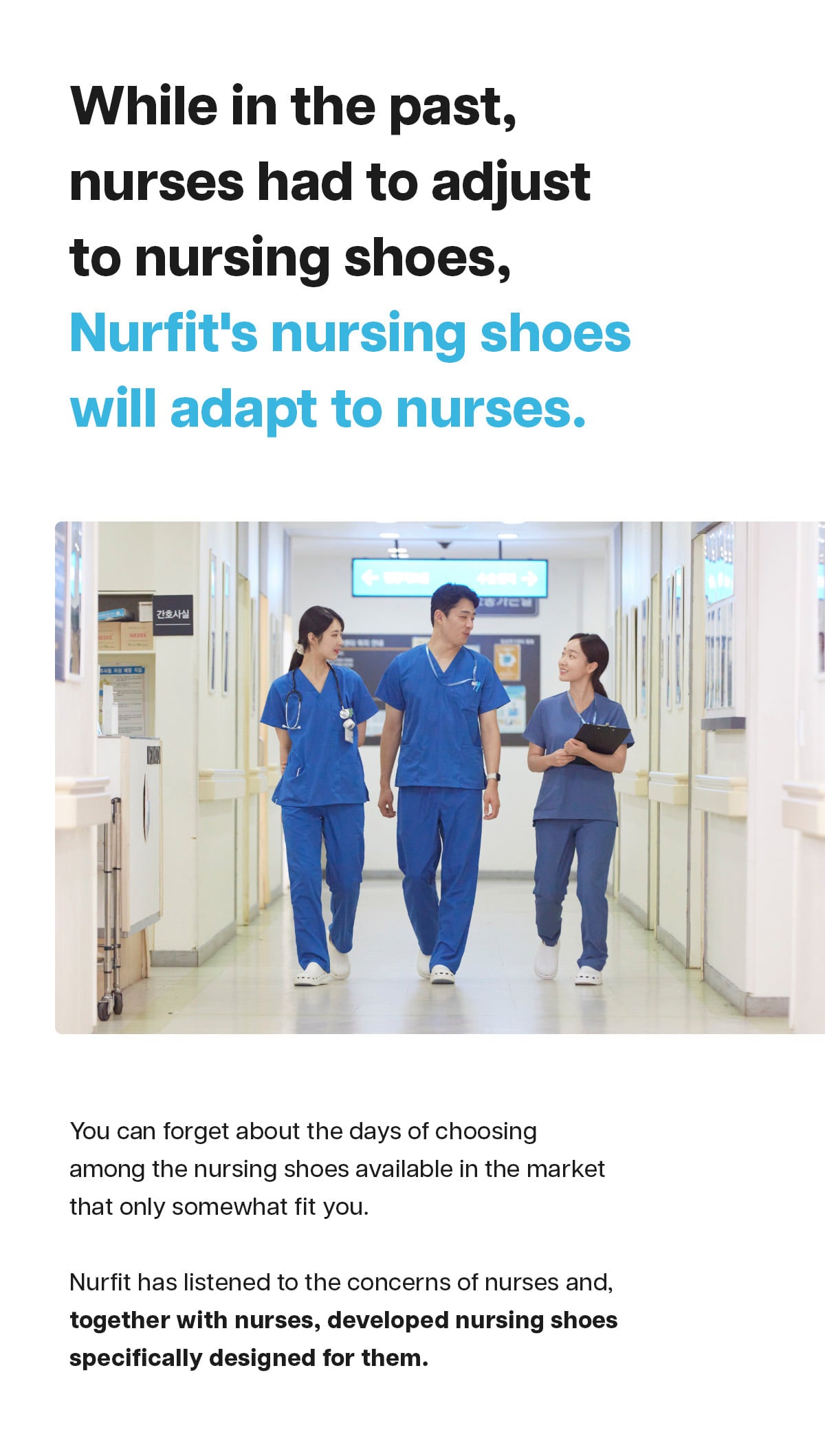 nurfit is a specialized Korean brand created by practicing nurses, dedicated to designing innovative products specifically for the nursing profession. Developed by professionals working directly in clinical settings, our offerings provide tailored solutions optimized for the unique demands of nursing. nurfit’s products prioritize comfort and efficiency, ensuring that nurses can perform at their best.
